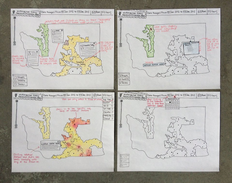 I started sketching potential interactions. We discussed pop ups for weather stations, heat maps for temperatures, and data selection options.